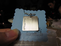 After stamping each pendant, I punched holes in the top of each one for the jump rings to go through, then began sanding. Each one had to be sanded in one direction then the other, until all of the scratches were gone from the unfinished metal and they had a nice brushed finish. By the time I was finished with all six, my poor fingers were sanded to the bone. (If you ever need to buy a gift for a metalworker, get them some nice hand lotions or gift certificate for a manicure - our hands really take a beating!)